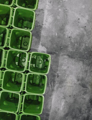 Keeping things clean is one of the most important factors for many CERO clients, according to Gaul. Unlike dumpsters that mix food and other waste, CERO’s bins are regularly cleaned, which clients see as added value. Dozens of collection bins at CERO’s warehouse attest to a commitment to cleanliness. Bins are returned periodically to the warehouse for a thorough cleaning. As Luna gives her tour, she notes that each truck includes water hoses that allow CERO drivers to clean bins on-site.
